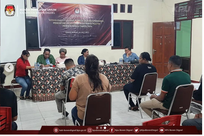 Terkait dengan KPU Kabupaten Boven Digoel ada beberapa poin yang disampaikan oleh ketua KPU Kabupaten Boven Digoel Ibu Helda Richarda Ambay dan Sekretaris KPU Kabupaten Boven Digoel Ibu Martina Tasik, dalam hal ini yaitu beberapa poin tersebut antara lain yang pertama kesiapan pemilihan terkait dengan SDM yaitu SDM anggota Komisioner KPU Kabupaten Boven Digoel yang mana anggota Komisioner tinggal 2 (dua) orang sehingga diharapkan pada waktu dekat setelah tahapan Hukum berakhir dipengadilan yang sementara ini sedang berlangsung dan diberikan waktu 29 Hari dan setelah dihitung telah berakhir 29 Harinya.